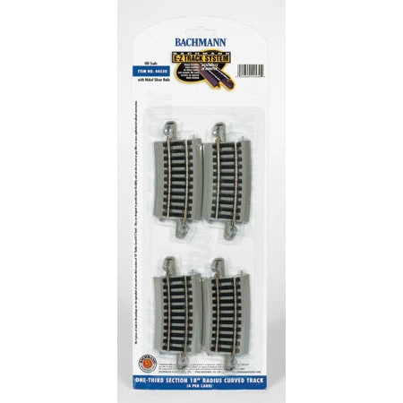 1/3 18″ Radius Curved E-Z Track w/ Nickel Silver Rail & Gray Roadbed (Package of 4) by Bachmann. / HO Scale Four Pieces of HO Scale Nickel Silver Curved Track from Bachmann. It’s part of the EZ Track System Series for experienced train collectors.