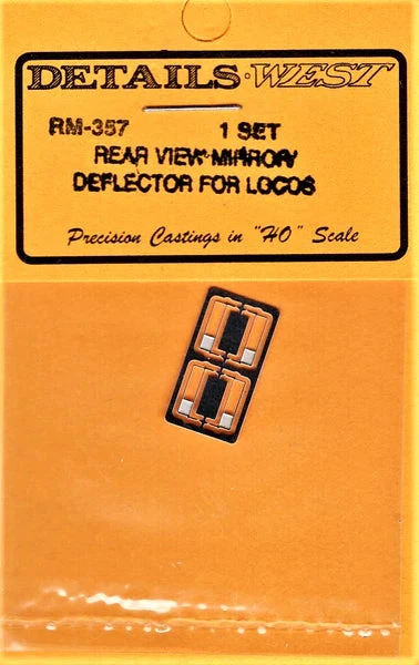 This is a Details West 357 HO Rear View Mirror/Deflector for Locomotives.