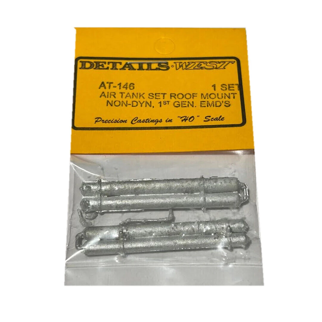 This is Details West AT-146 Air tank set EMD. Geeps-roof mount. Used on EMD GP7 through GP20s and CNW GP35s.