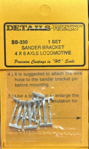 This is a Details West 330 HO Locomotive Sander Brackets 4 Axel and 6 Axel Trucks.