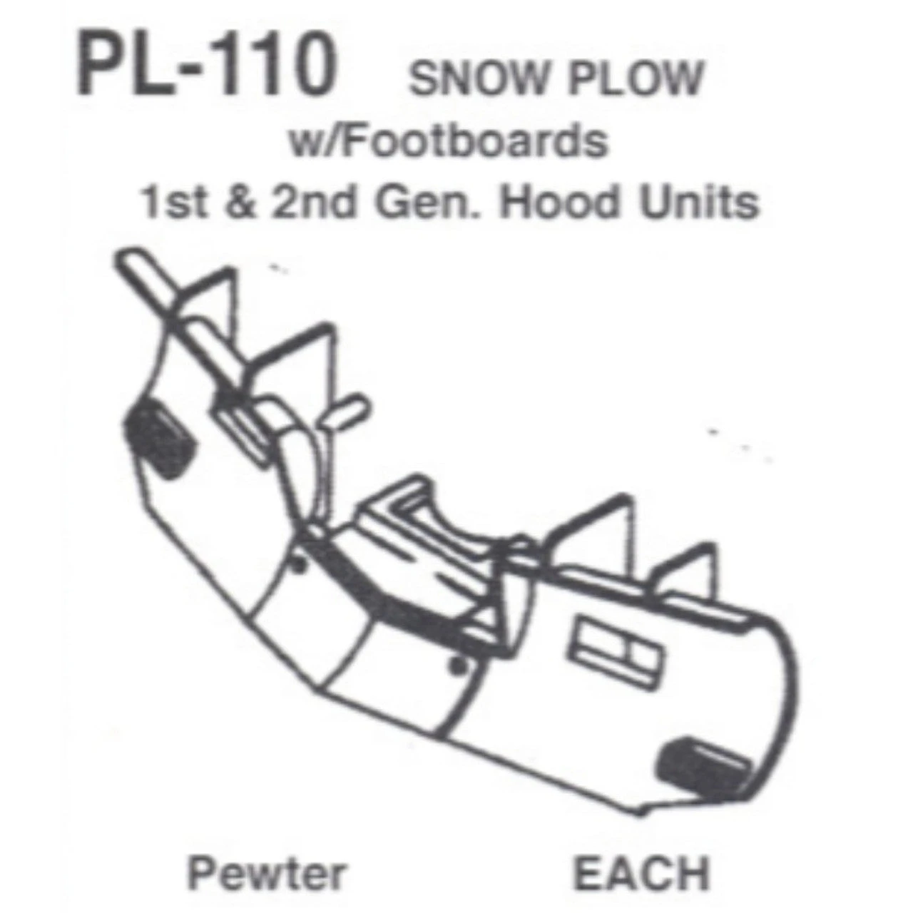 This is a Details West 110 Snow Plow Medium Height 1&2 Gen Hood Units. Metal castings duplicate various styles of pilot plows installed on many diesels. For second-generation hood units of SP, UP and WP.