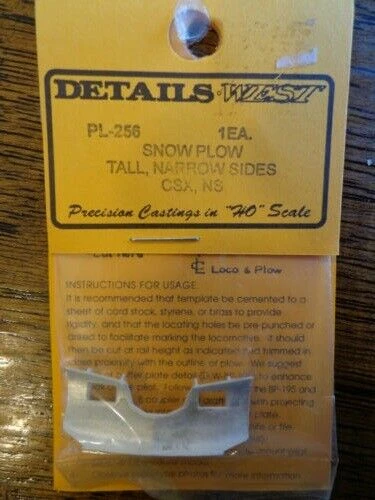 Details West Snow Plows will help keep the rails clear on your HO Scale layout. Available in several designs to match a variety of prototypes, each part is a detailed metal casting.