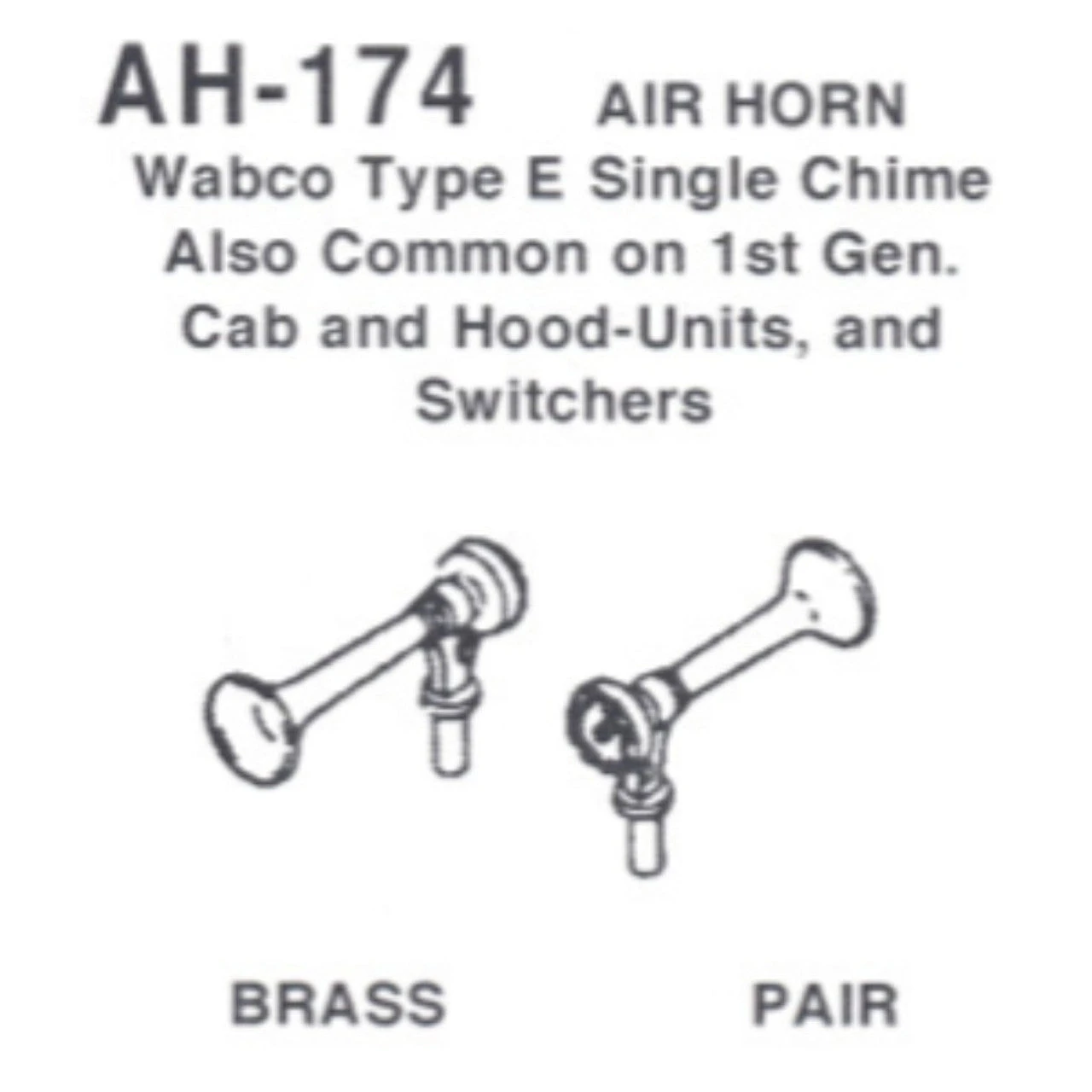This is a Details West AH-174 Wabco Type E Single Chime Air Horns (2). For first generation diesels.