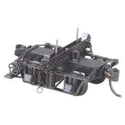 Highly detailed logging equipment. Die-cast center beam, metal trucks, ribbed back wheels, log bunks and falling stakes. Comes with couplers. (without logs) One pair trucks
