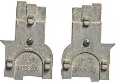 Kadee #341 HO Three-Point Track Gauge For Code 70 & 100 Rail. Die-cast three point track gauge with centerline indicator. Code 70 on one side, code 100 on the other. Features:
