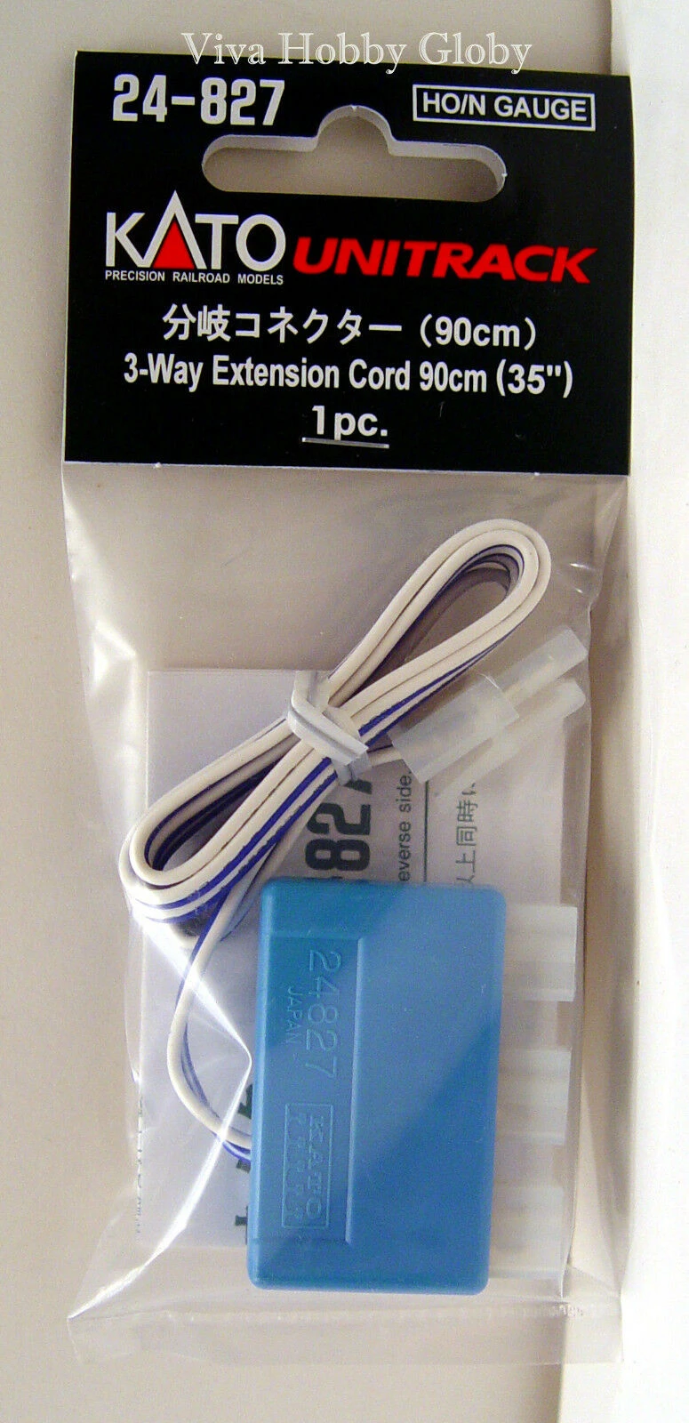The Kato 3-Way Extension Cord is for connecting up to three Kato power plugs which are used on the Kato Feeder Track and Terminal UniJoiners to the Kato Power Pack.