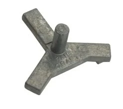Three-point, diecast metal track gauge keeps rails aligned when hand-laying track.
