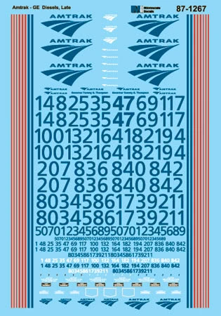 Amtrak GE P40/42 Diesels, Late HO Decal Set