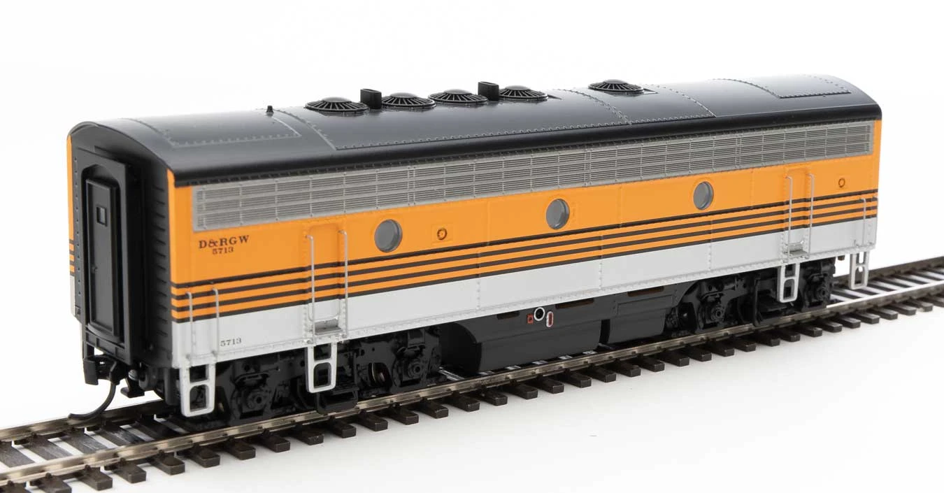 EMD F7 A-B Set – Standard DC — Denver & Rio Grande Western(TM) #5714, 5713 (Grande Gold, silver, black)