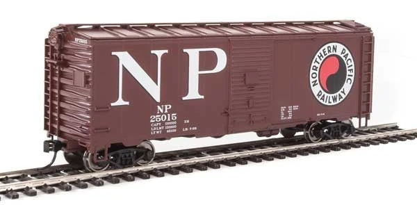 The Association of American Railroads had been establishing design standards for freight cars since the early part of the century. Each new design standard meant higher capacity, lighter, more durable cars. The 1937 standard 40′ box car featured an interior height of 10′. Just prior to America’s entry into the war, there was a push for an even larger interior height for the AAR standard. The first cars that would eventually be termed 1944 AAR, were actually built in 1941 but the war delayed its declaration as the standard. The new taller cars required a new design of end. Corrugated metal ends had been used since the days when wood side cars dominated for a very good reason, shifting loads would burst through wooden ends during sudden starts and stops! These corrugated panels were stamped in two sections, split horizontally down the middle. The 1937 standard had 5 ribs on one half and 4 ribs on the other — creating what is called a 5-4 Dreadnaught end. The slightly taller 1944 model required something a little different. The lower panel has 4 ribs while the upper panel has 3 then a space and a final rectangular rib at the top. Called a 4-3-1 (or R-3-4) Improved Dreadnaught end, this design would dominate new box car construction for years.