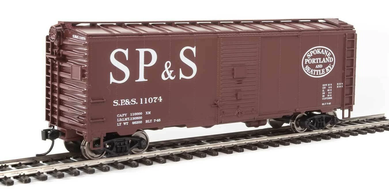 The Association of American Railroads had been establishing design standards for freight cars since the early part of the century. Each new design standard meant higher capacity, lighter, more durable cars. The 1937 standard 40′ box car featured an interior height of 10′. Just prior to America’s entry into the war, there was a push for an even larger interior height for the AAR standard. The first cars that would eventually be termed 1944 AAR, were actually built in 1941 but the war delayed its declaration as the standard. The new taller cars required a new design of end. Corrugated metal ends had been used since the days when wood side cars dominated for a very good reason, shifting loads would burst through wooden ends during sudden starts and stops! These corrugated panels were stamped in two sections, split horizontally down the middle. The 1937 standard had 5 ribs on one half and 4 ribs on the other — creating what is called a 5-4 Dreadnaught end. The slightly taller 1944 model required something a little different. The lower panel has 4 ribs while the upper panel has 3 then a space and a final rectangular rib at the top. Called a 4-3-1 (or R-3-4) Improved Dreadnaught end, this design would dominate new box car construction for years.