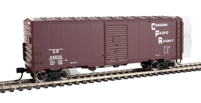 Add authentic equipment to operations from the 1960s to 1980s with WalthersMainline 40′ Association of American Railroads (AAR) 40′ Modernized 1948 Boxcars. Built by the thousands after WWII, most had lots of life left in them when new safety standards were adopted in the mid-1960s to eliminate most freight car running boards. Many roads opted for inexpensive upgrades to bring the cars into compliance, installing short ladders on the A end, while retaining the longer ladder, high brake wheel and a single roof-mounted grab iron on the B end. Running into the 1980s in regular service, some were later reassigned to maintenance-of-way work. Features of these HO models include: