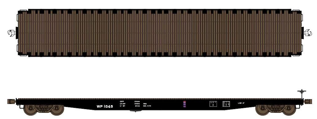 Wheels of Time 62′ Plain-Deck Flatcars were 1960s and later favorites of the lumber and building materials industries where a clear 57′ loading deck was desired. Constructed by Gunderson, 62′ flatcars could be found handling loads from the Pacific Northwest to markets where there were housing booms in the 1960s and 1970s. Look-alike cars from other manufacturers such as Thrall, P-S and Nappanee also hit the rails on lines across the continent. This model is based on cars delivered in 1966 (and later for look-alikes). 62′ Plain-Deck Flatcars feature applied grab irons, separate ladders, metal wheels, accurate decoration and Kadee(R)v scale Magne-Matic(R) knuckle couplers.