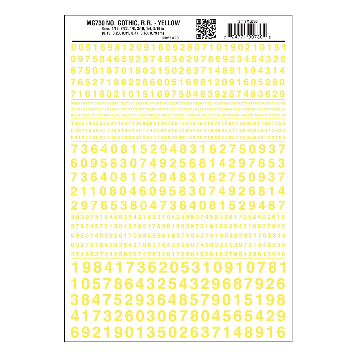 Customize anything with this Woodland Scenics Dry Transfer NumberDecal Sheet in Yellow Gothic RR Font.